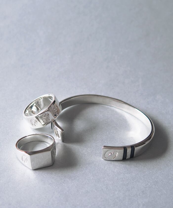 複数リングを着けた時にも自然と馴染んでくれるシンプルさとスタンプワークの個性との、バランスの良いリングに仕上がりました。