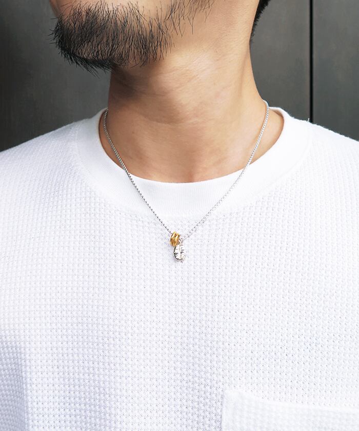 そのままチェーンに通してもらうことで、ラフなイメージでビーンズネックレスをアレンジできます。