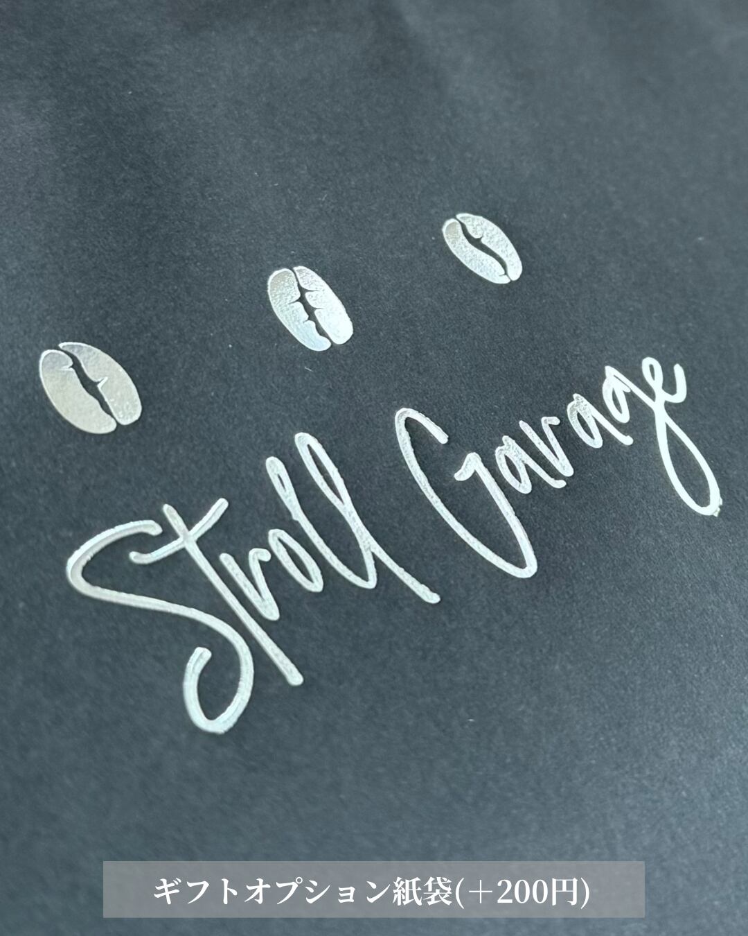 裏側にはSTROLL GARAGEの"SG"をモチーフにしたロゴマークとコーヒー豆のシルエットもしっかり刻印しております。