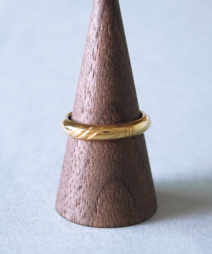 同デザインで平リングのシルバーカラー、甲丸リングのゴールドカラー(K18YGプレーティング)をご用意しております。