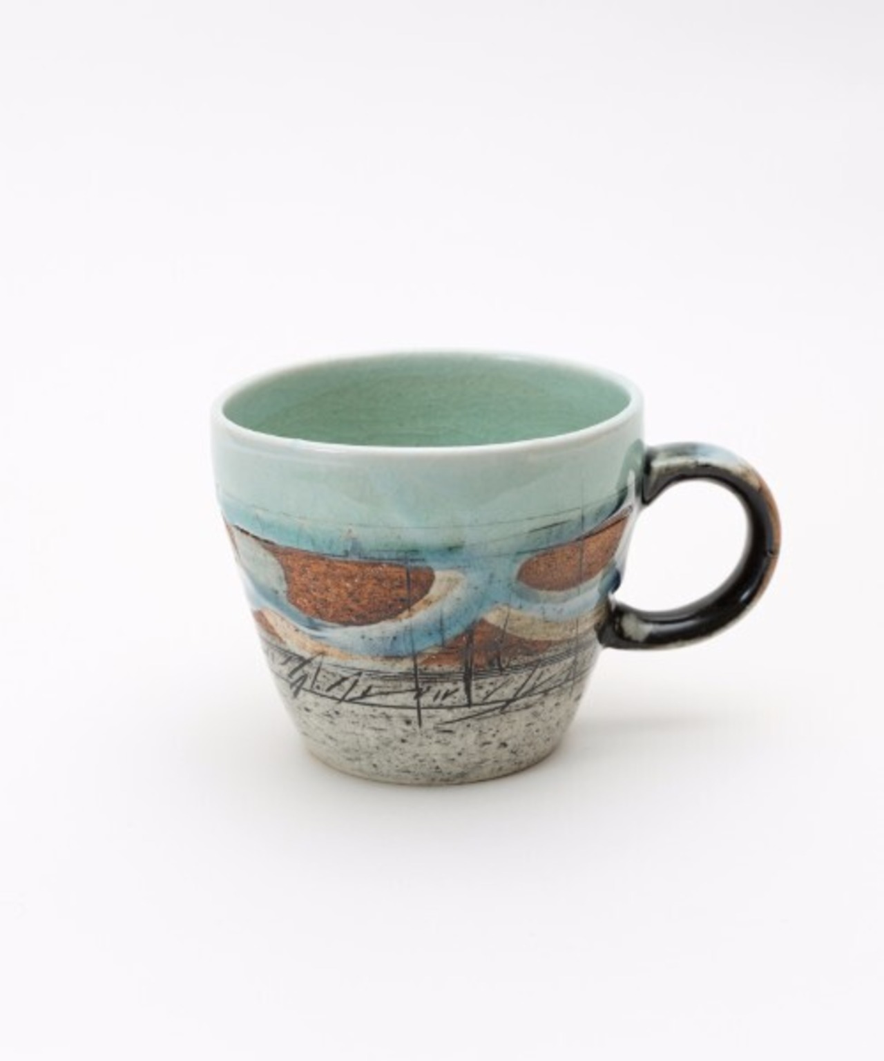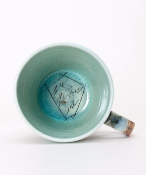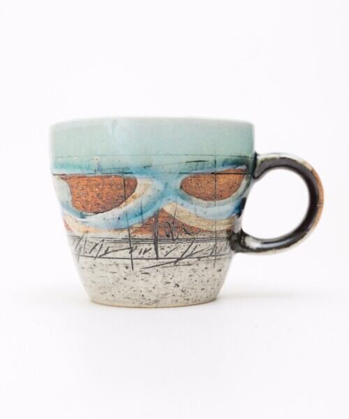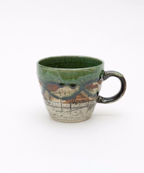 美濃焼伝統の地である岐阜県土岐市生まれの林英樹さんのマグカップは、唯一無二の柄が特徴。